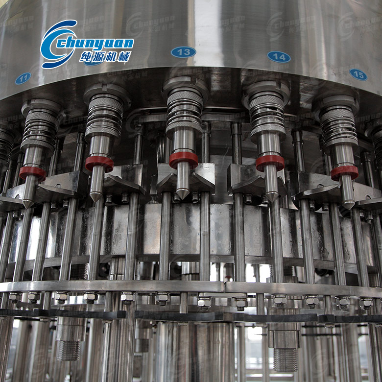 純源機械廠家生產(chǎn)制造的全自動飲用水灌裝機械適合350-1500ml的PET瓶裝水的灌裝生產(chǎn),根據(jù)物料水位高度主動控制,過程全自動生產(chǎn)完成。