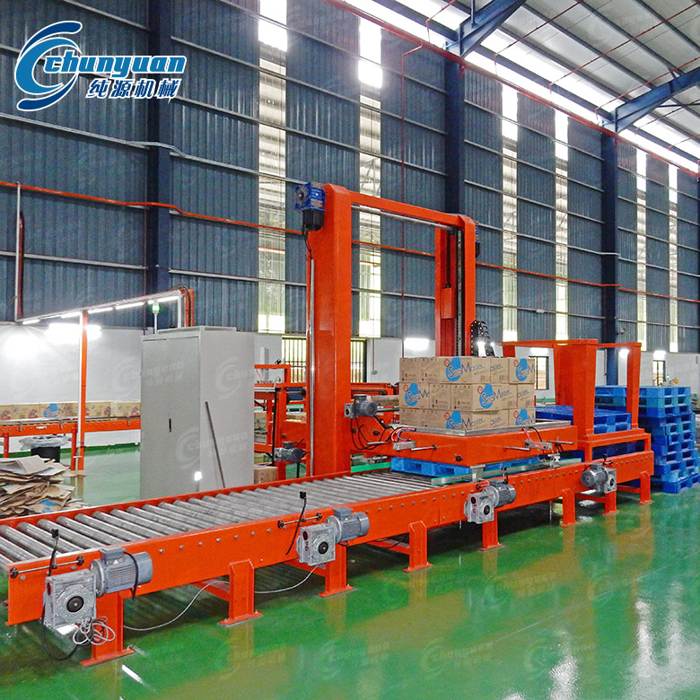 全自動(dòng)碼垛機(jī)是將已裝入容器的紙箱,按一定排列碼放在托盤(pán)上,進(jìn)行自動(dòng)堆碼,可堆碼多層,然后推出,便于叉車(chē)運(yùn)至倉(cāng)庫(kù)儲(chǔ)存。