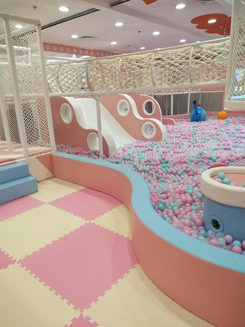 先來(lái)介紹一下海洋球池,海洋球池是淘氣堡里的不可缺少的區(qū)域藍(lán)、白、粉三色的海洋球,孩子們可以通過(guò)球辨識(shí)色彩,練習(xí)數(shù)數(shù),練習(xí)歸類(lèi),認(rèn)識(shí)圖形,了解規(guī)律等。