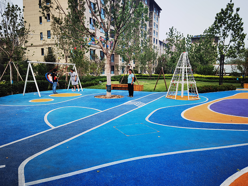 北京亦莊首創(chuàng)遠(yuǎn)洋禧瑞天著社區(qū)的主題樂(lè)園位于社區(qū)內(nèi)的中心廣場(chǎng),廣場(chǎng)采用橡膠地面,擁有微地形樂(lè)園,可以讓孩子鉆爬,也有滑滑梯,還有動(dòng)物造型的小滑梯,秋千架,攀爬架等,可以讓孩子們自有玩耍。