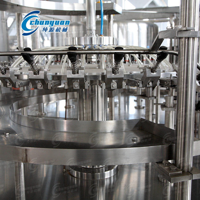 純源機械廠家生產(chǎn)制造的全自動飲用水灌裝機械適合350-1500ml的PET瓶裝水的灌裝生產(chǎn),根據(jù)物料水位高度主動控制,過程全自動生產(chǎn)完成。