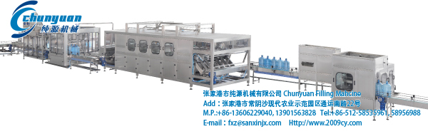 張家港市純源機(jī)械研發(fā)制造的CYT-300系列桶裝水灌裝設(shè)備集自動(dòng)洗瓶、自動(dòng)上瓶、灌裝、套蓋、壓蓋、成品送出于一體。桶裝水灌裝設(shè)備適用于灌裝3加侖、5加侖水桶的全.............